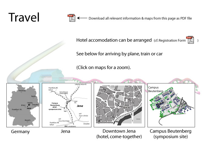 To go directly to the conference site, the IPHT at the "Beutenberg Campus", you have to leave at the exit Jena-Göschwitz and go towards city center. Follow the signs "Beutenberg Campus" to the left. When you reach the campus, take the entrance at the left and follow the signs to the IPHT.